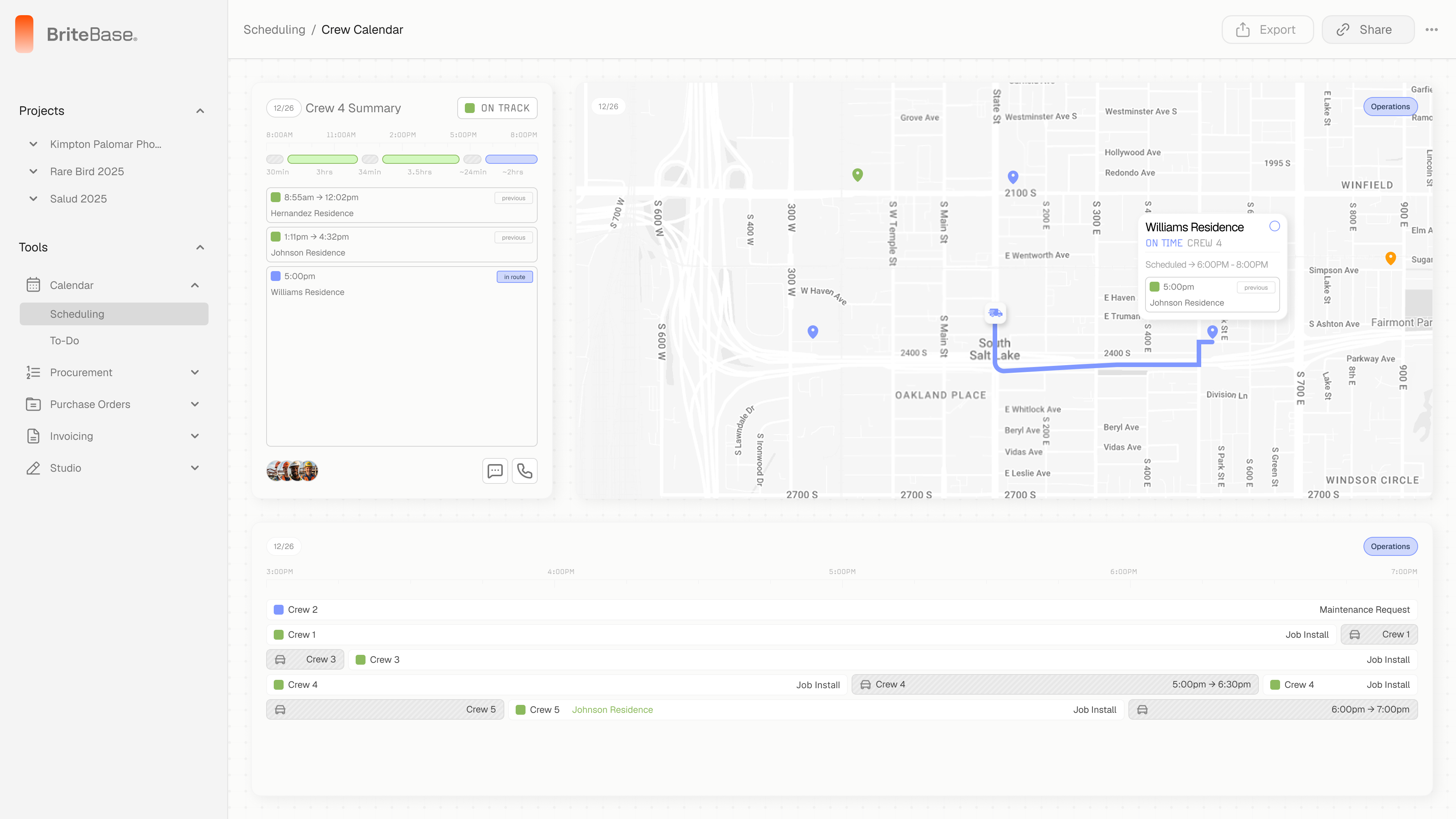 See every job on a calendar. Assign crews with a click. They get the details on their phone instantly.